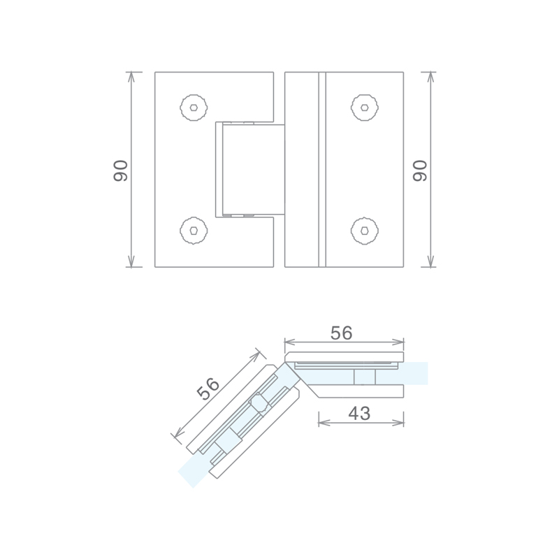 产品名称:浴室玻璃门铰链135° 适用标准:符合QB/T5280-2018玻璃门铰链标准 适用范围:适用于淋浴房玻璃门 开启角度:最大开启角度双向90° 功能类型:用于玻璃与玻璃连接 适用门厚:8-10mm厚度玻璃门 主要材质:纯铜 最大承重:45KG/2只 安装方式:不分左式和右式,具有自闭功能 精品福利视频.
