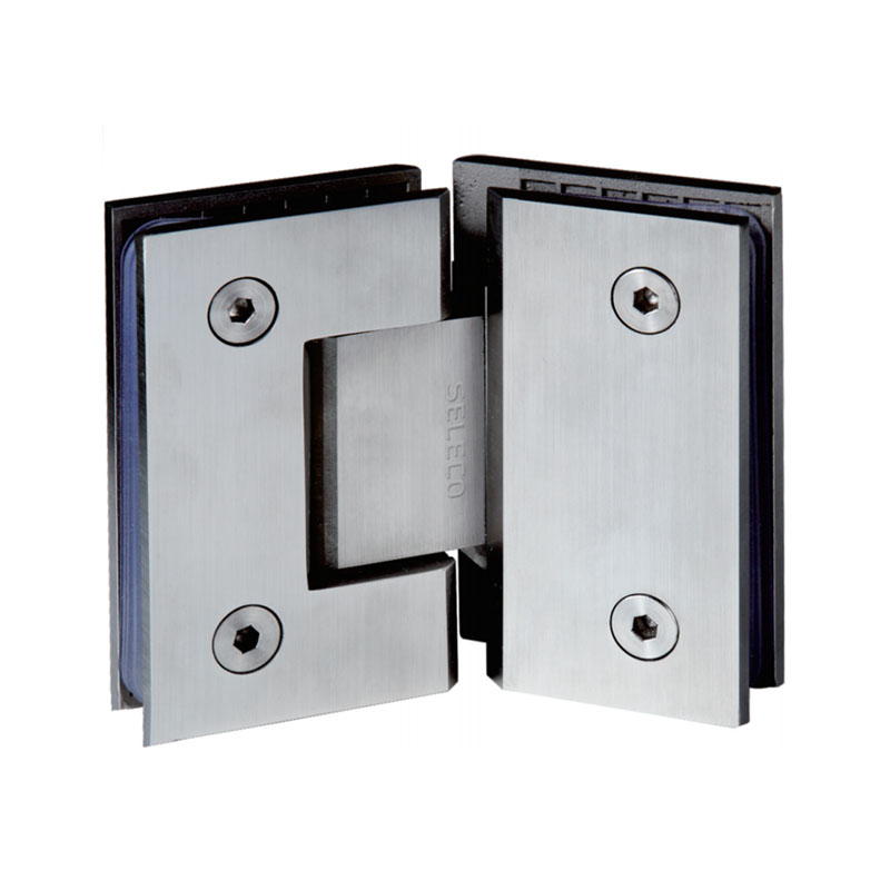 产品名称:浴室玻璃门铰链135° 适用标准:符合QB/T5280-2018玻璃门铰链标准 适用范围:适用于淋浴房玻璃门 开启角度:最大开启角度双向90° 功能类型:用于玻璃与玻璃连接 适用门厚:8-10mm厚度玻璃门 主要材质:SUS不锈钢304 最大承重:45KG/2只 安装方式:不分左式和右式 精品福利视频,具有自闭功能 .