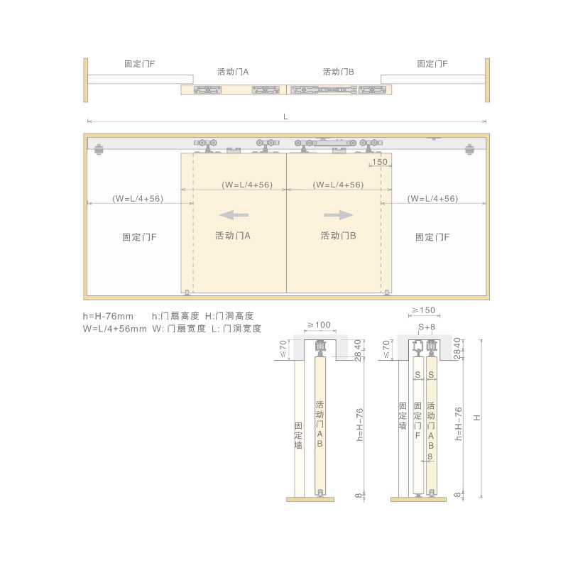 产品名称:阻尼双向两联动移门吊轮 适用标准:符合《QB/T4597-2013移门轮轨通用技术标准》 适用范围:适用于同步反向开启双扇推拉门 闭合类型:内置阻尼缓冲闭合装置 适用门厚:40-45mm 适用门宽:≥600mm 最大承重:80KG/1扇 高度调节:±2mm 配套吊轨:SW-22 功能描述:通过把联动门扇推拉到一侧得到足够大的空间轻松拉动单扇门 精品福利视频,助力其它1扇门开启或关闭,轻松顺滑无噪音 .